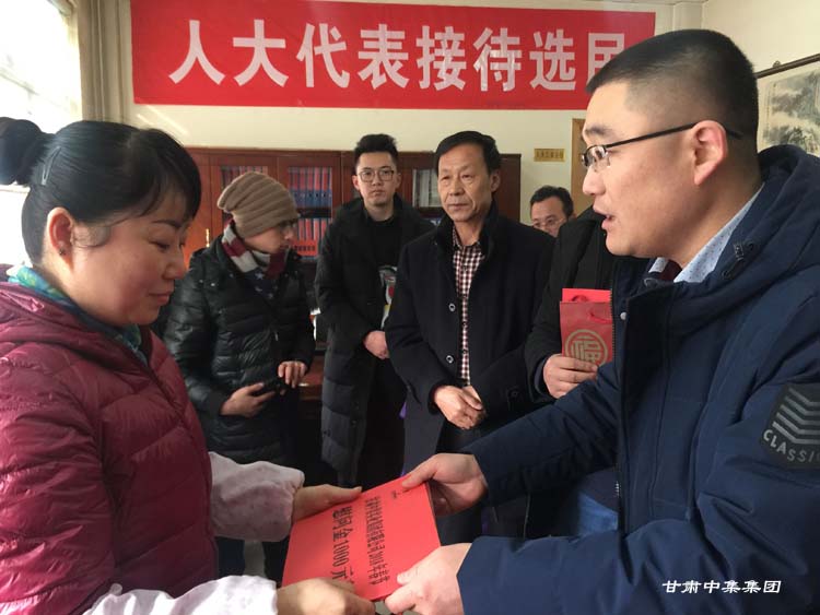 2018年2月7日上午,在2018年新春佳節(jié)即將來(lái)臨之際,甘肅省慈善總會(huì)榮譽(yù)會(huì)長(zhǎng)、安寧區(qū)人大代表、甘肅中集集團(tuán)董事長(zhǎng)周啟濤親自安排部署,并委托集團(tuán)公司黨委委員魏建峰、安 康兩位同志親自前往安寧區(qū)十里店街道辦事處,在街道黨工委副書(shū)記、人大工委主任梅鵬飛等領(lǐng)導(dǎo)陪同下,開(kāi)展愛(ài)心送溫暖行動(dòng),為街道10戶特困家庭送上新年的祝福和慰問(wèn)金。