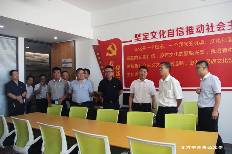 調(diào)研組一行首先參觀了集團公司黨委宣傳陣地、黨員活動室、談心談話室、閱覽室、健身中心等,通過查看黨支部建設(shè)標準化資料、聽取專題工作匯報和現(xiàn)場交談后,韓 旭副局長對甘肅中集集團黨委創(chuàng)新工作思路給予充分肯定,重點對黨支部建設(shè)標準化、樓宇黨建工作特色和亮點,特別是集團公司黨委開辟了非公經(jīng)濟組織黨建工作的新路子、在開展 “三崗聯(lián)創(chuàng)”、“三亮”、“立足崗位做貢獻”等活動中取得優(yōu)異成績給予充分肯定。他強調(diào):“甘肅中集集團黨委黨建工作抓住了非公企業(yè)黨建存在問題的關(guān)鍵,充分發(fā)揮了黨組織的政治優(yōu)勢和組織優(yōu)勢,通過黨員隊伍建設(shè)和加強組織力,提高了企業(yè)經(jīng)營管理水平,黨建各項工作求真務(wù)實,開拓創(chuàng)新”。他現(xiàn)場向西北五省、市非公黨建負責人強調(diào):“要以此次觀摩為契機,認真學習借鑒甘肅中集集團黨委的成功經(jīng)驗和做法,特別是把黨支部建設(shè)在樓宇、打造紅色紐帶工程和深入推進黨支部建設(shè)標準化、強化組織建設(shè)、創(chuàng)新活動方式、營造非公經(jīng)濟組織黨建工作的濃厚氛圍、為提升樓宇總部經(jīng)濟高質(zhì)量發(fā)展提供堅強的政治保障和組織保障方面要大力學習和推廣!