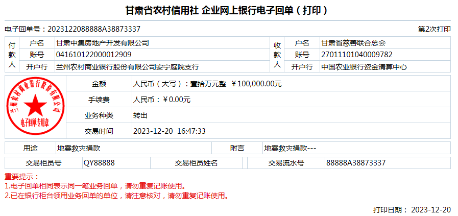 甘肅中集集團(tuán)向臨夏積石山地震災(zāi)區(qū)捐款10萬元